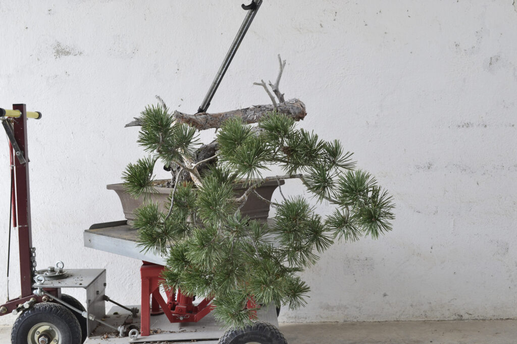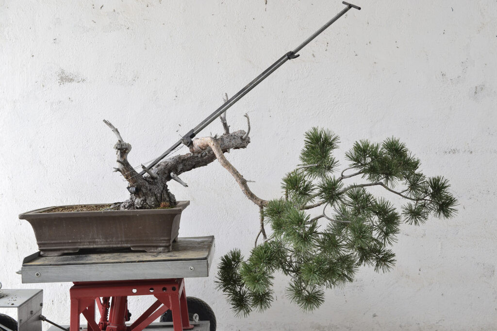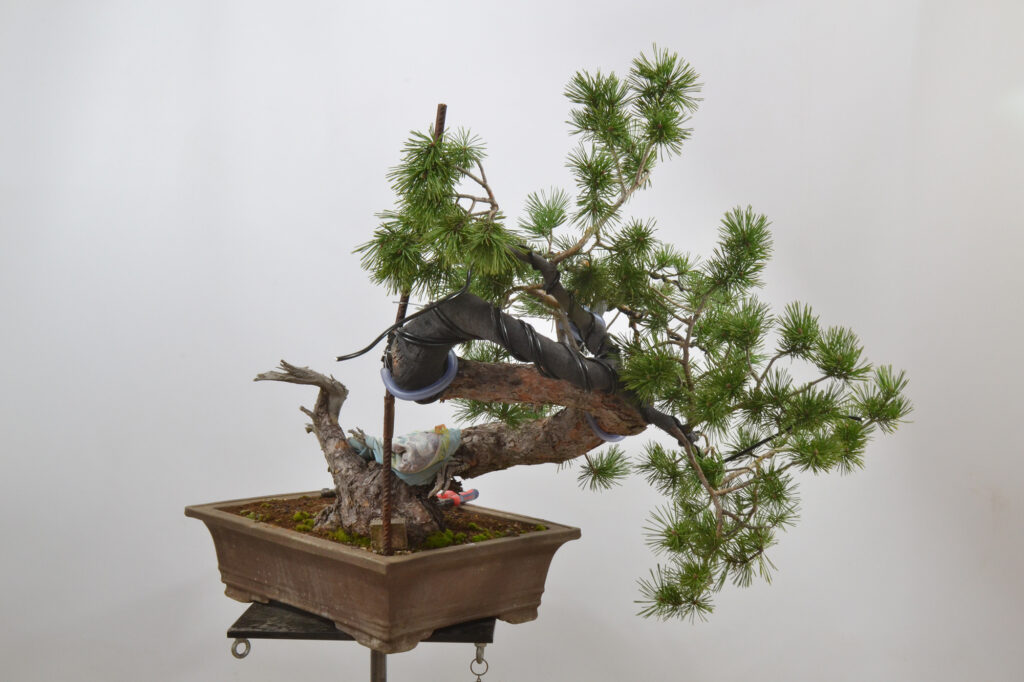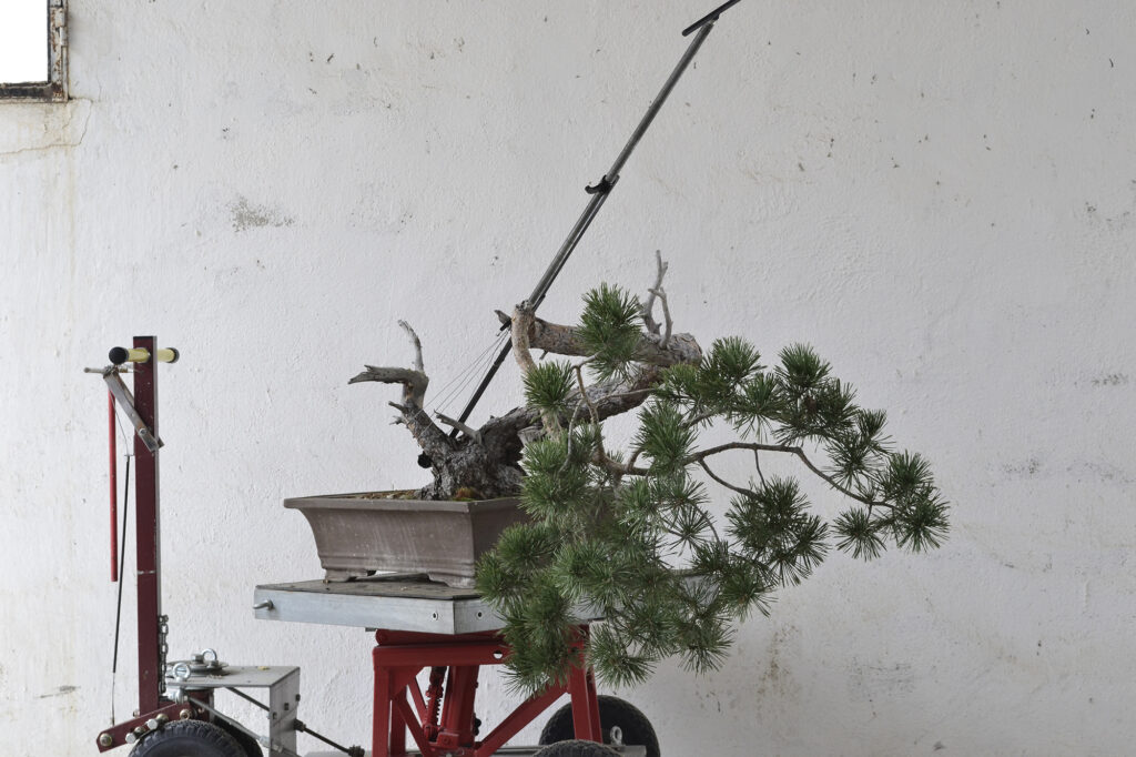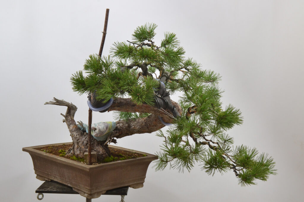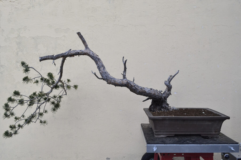 Después de este trabajo se dejó una temporada para recuperar el vigor. La primavera de 2023 se trasplantó otra vez y se volvió a dejar crecer prácticamente libre. Se realizaron algunas podas para equilibrar el vigor de las diferentes zonas del pino.