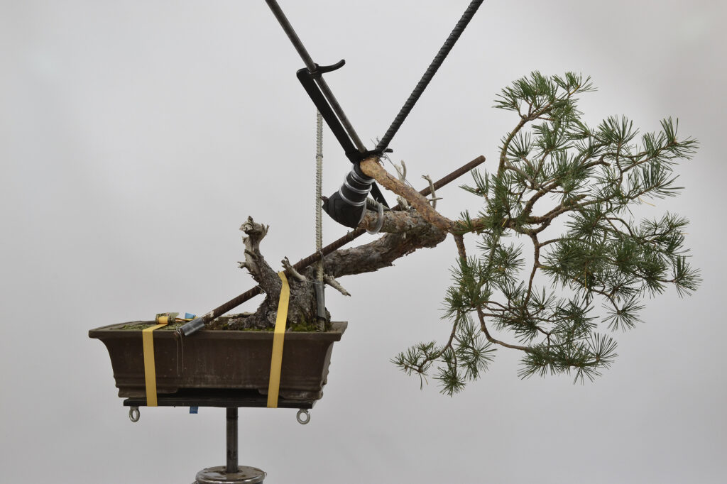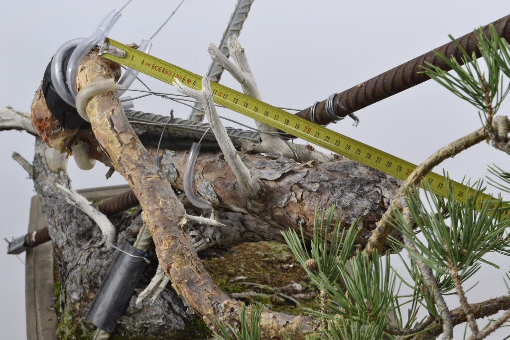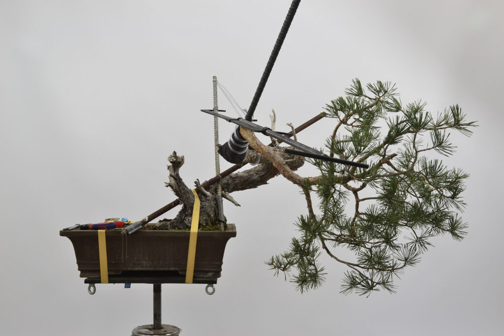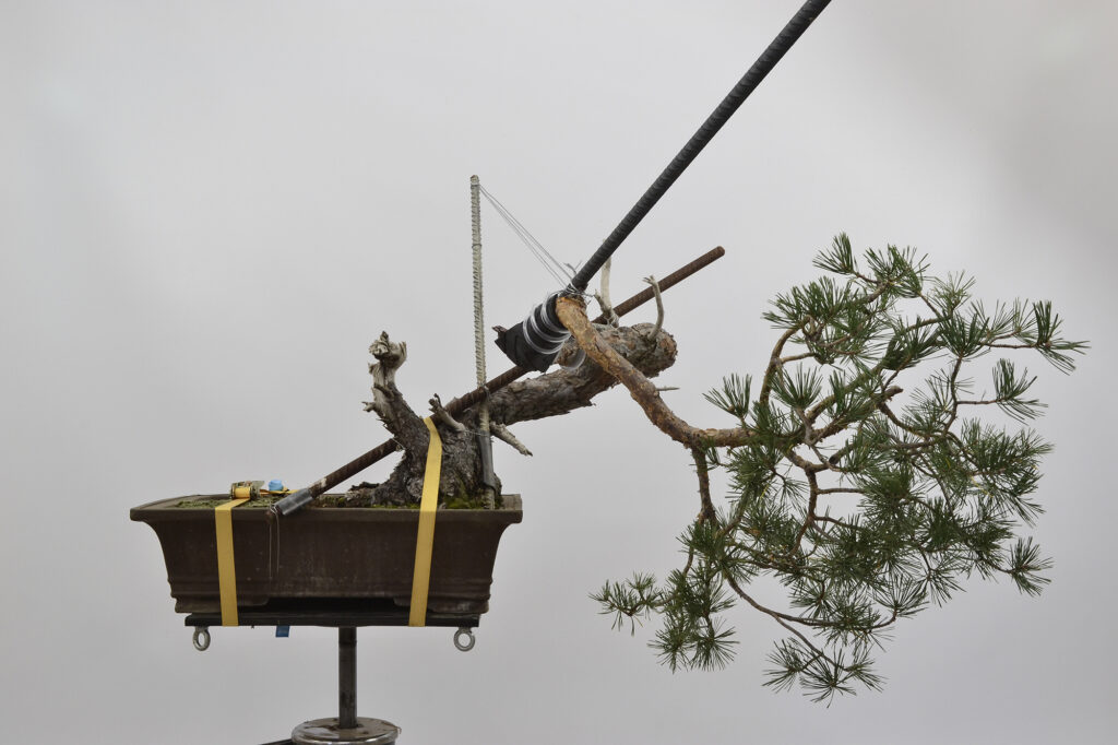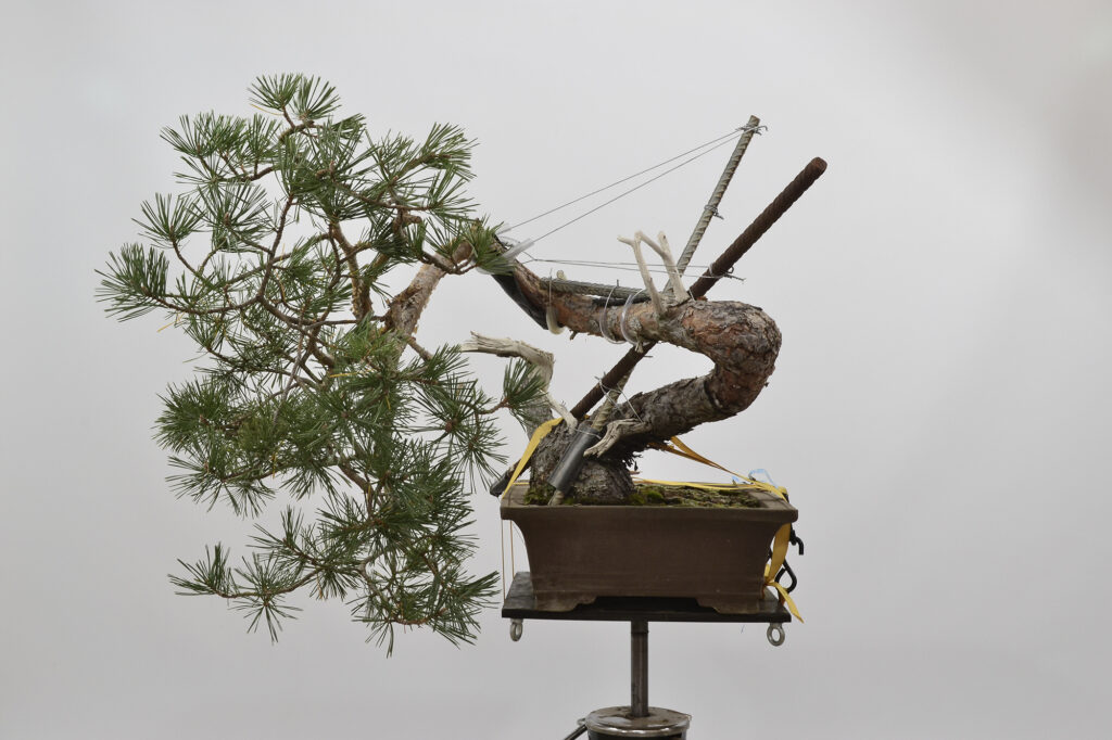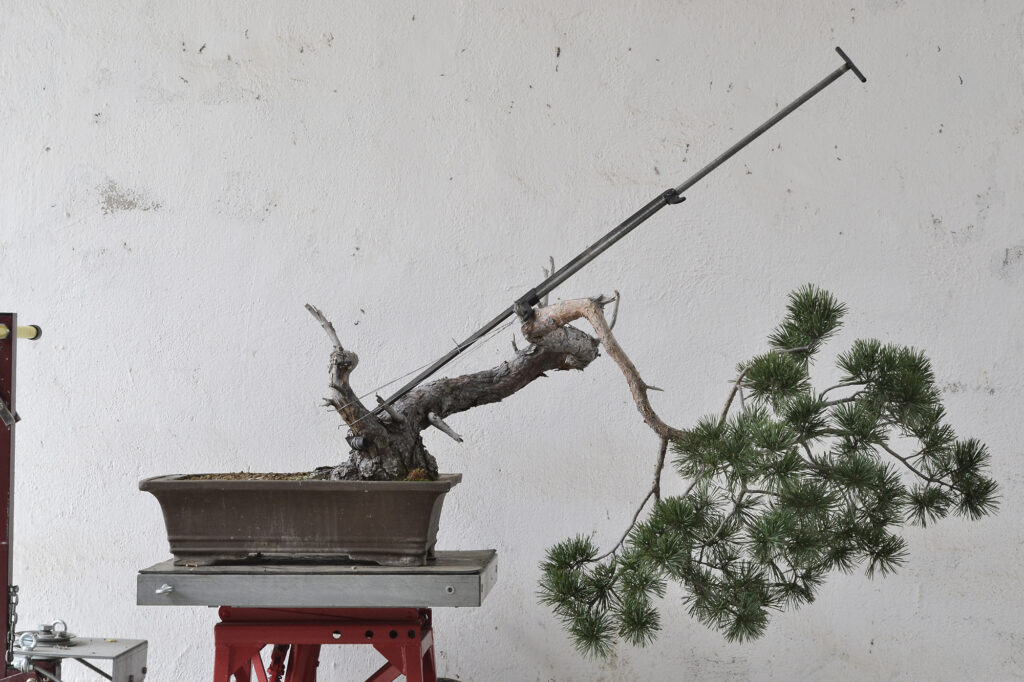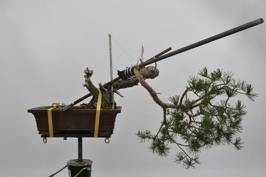 Después de este trabajo se dejó una temporada para recuperar el vigor. La primavera de 2023 se trasplantó otra vez y se volvió a dejar crecer prácticamente libre. Se realizaron algunas podas para equilibrar el vigor de las diferentes zonas del pino.