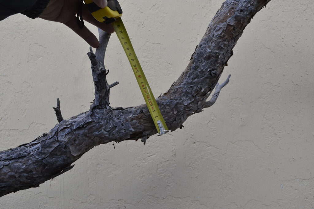 Para que nos situemos en el calibre de este doblado, vamos a poner una imagen cenital del tronco en el punto de torsión. Recordemos que el tronco salía recto (con curvas inapreciables).