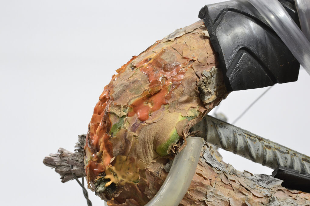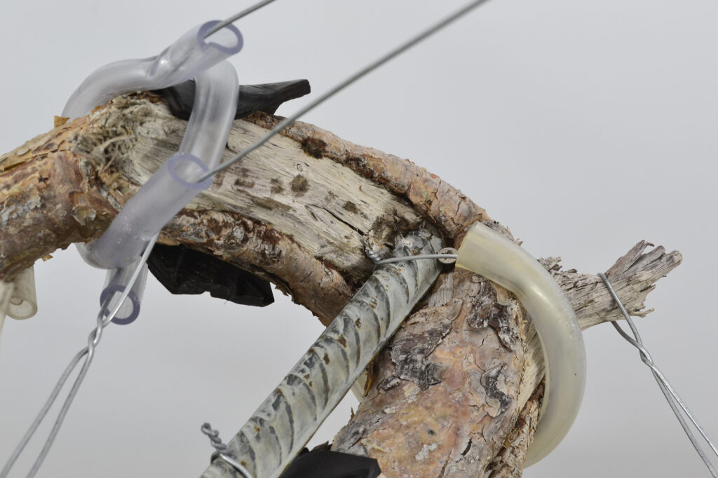 La rama de contrapeso oculta las curvas del tronco. En un futuro, se colocará dejando espacios para ver cómo se mueve el tronco.